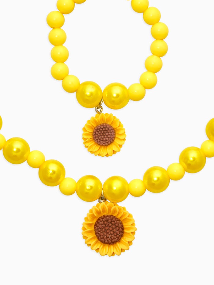 Набор детский «Выбражулька. Цветок Подсолнух», 3 предмета: бусы, браслет, кольцо безразмерное, желтый