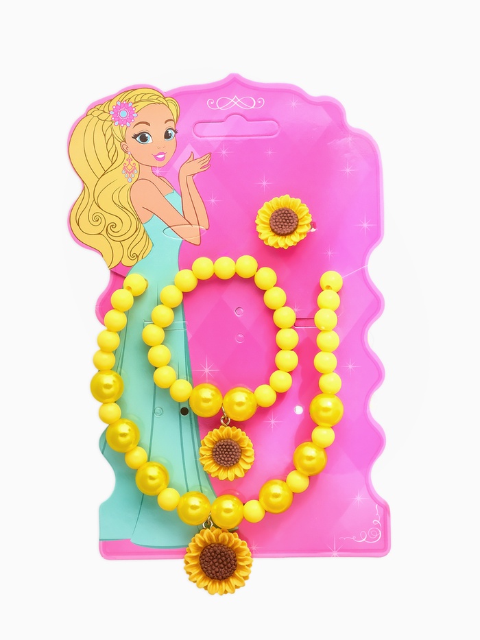 Технические характеристики Набор детский «Выбражулька. Цветок Подсолнух», 3 предмета: бусы, браслет, кольцо безразмерное, желтый