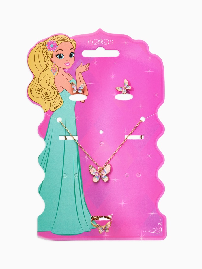 Технические характеристики Набор детский «Выбражулька. Бабочка», 3 предмета: кулон, кольцо, серьги, разноцветный в золоте
