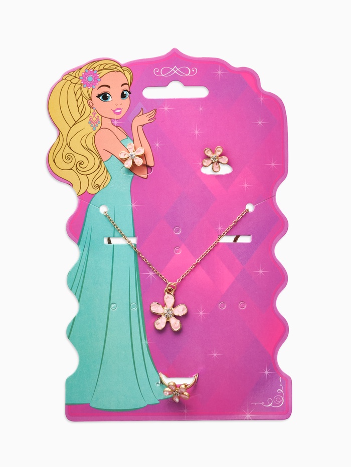 Технические характеристики Набор детский «Выбражулька. Цветок», 3 предмета: кулон, кольцо, серьги, розовый в золоте