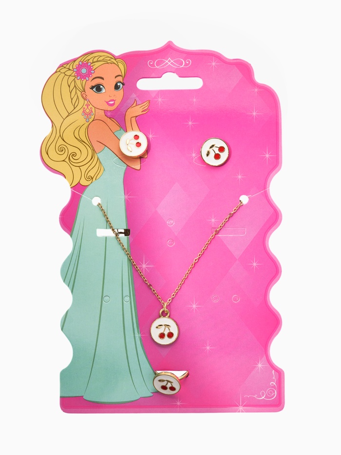 Технические характеристики Набор детский «Выбражулька. Вишня», 3 предмета: кулон, кольцо, серьги, бело-красный в золоте