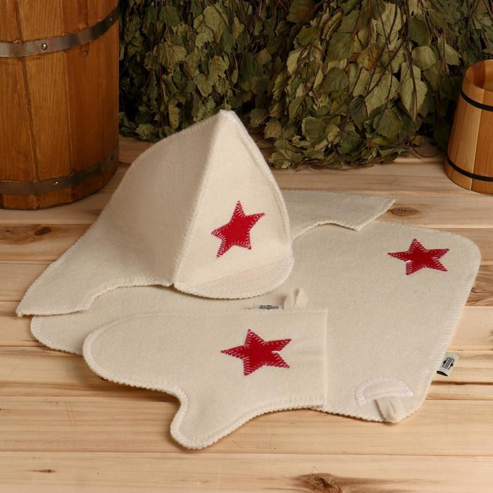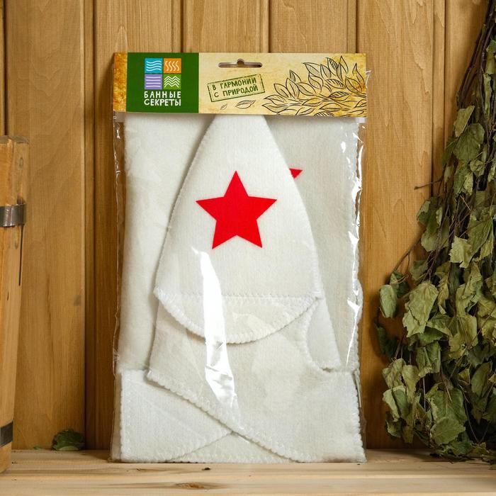 Набор для бани «Будёновец», 3 предмета: шапка, коврик, рукавица