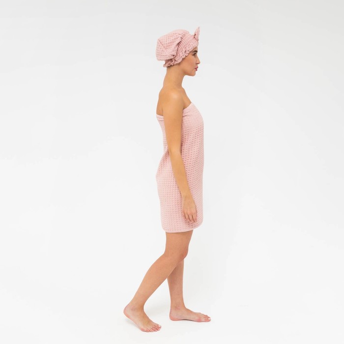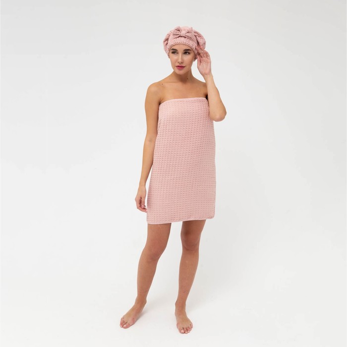 Набор для бани и ванной Этель «Вафля» полотенце 70*140 см+чалма 21*25 см, цв.розовый