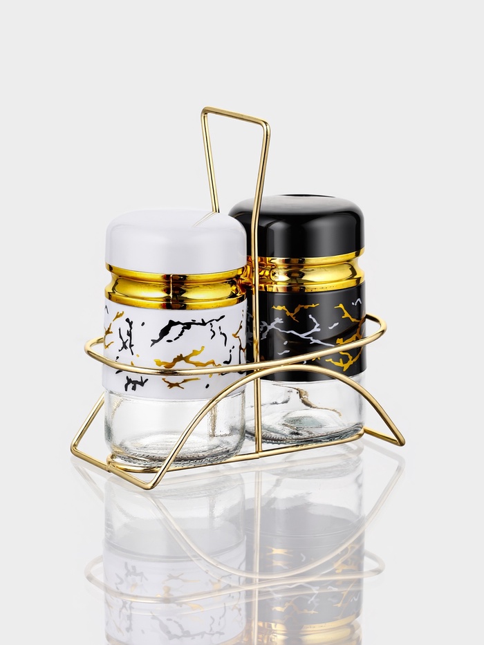 Набор для специй S&P.Marble, 2 шт., на подставке, стекло, белый, чёрный