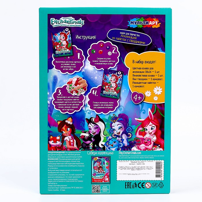 Технические характеристики Набор для детского творчества «Энчантималс» картина из пайеток с гвоздиками