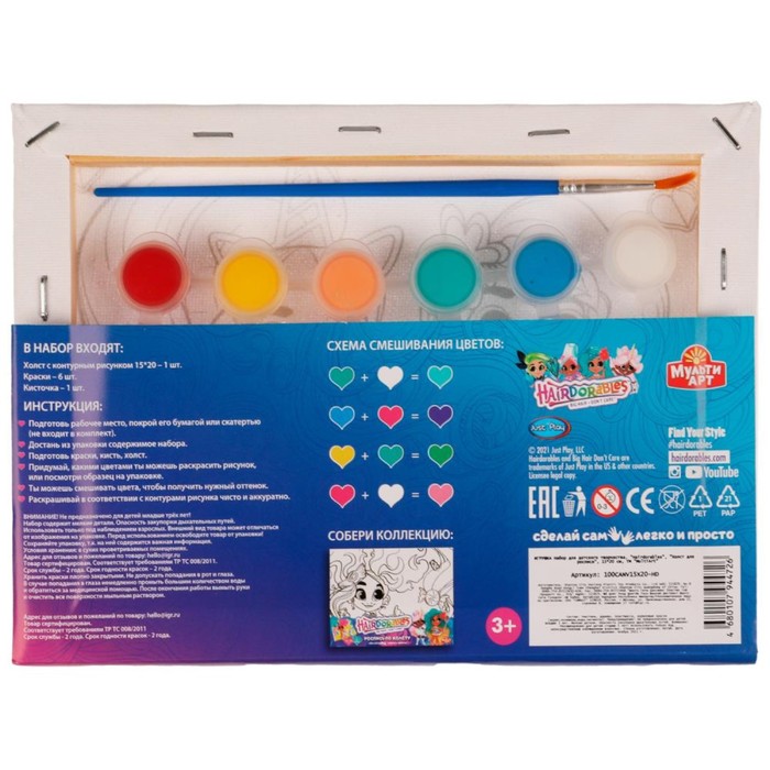 Технические характеристики Набор для детского творчества Hairdorable, холст для росписи, 15 × 20 см