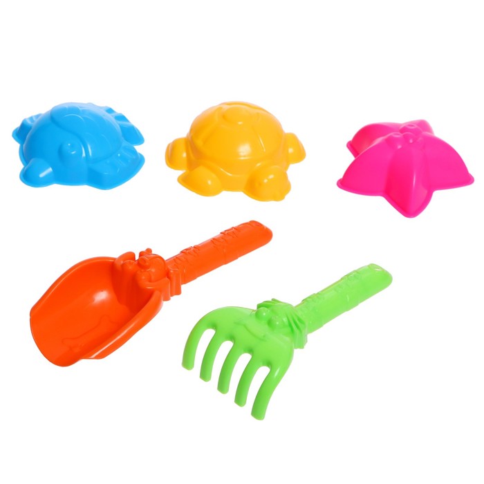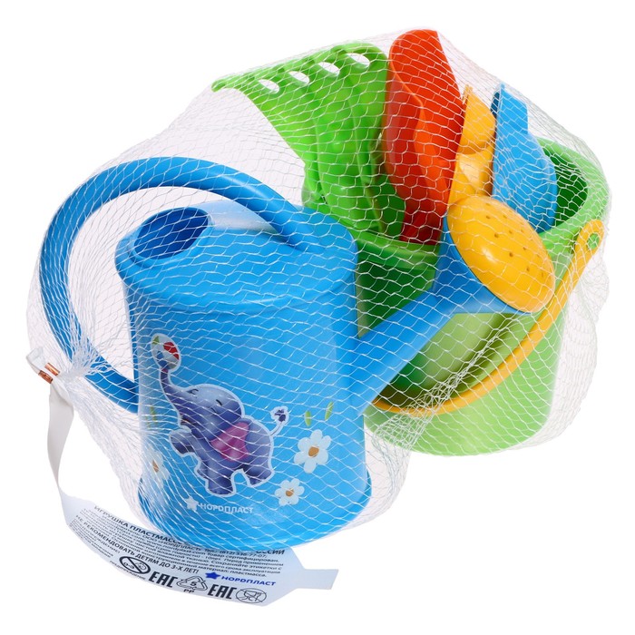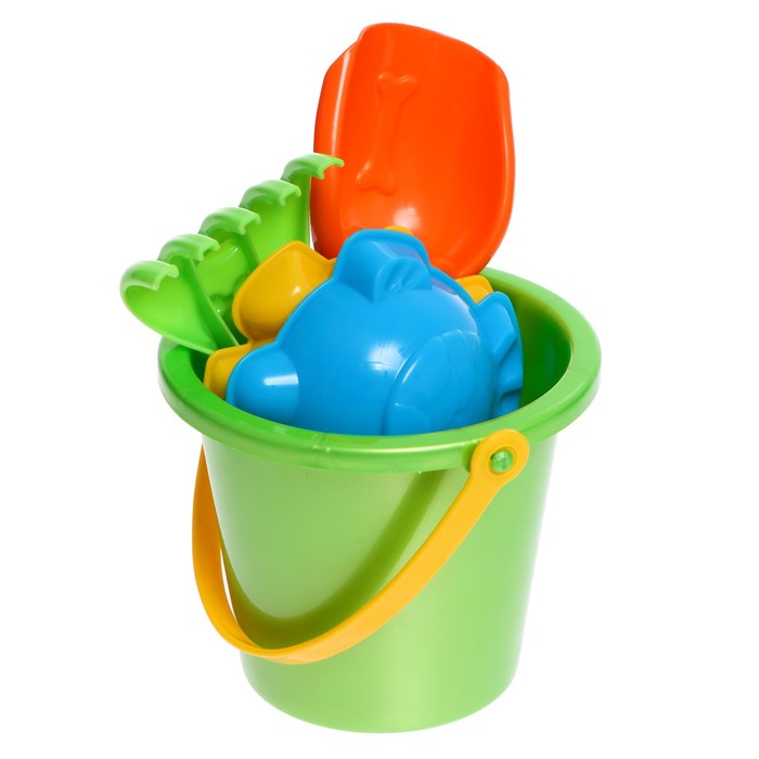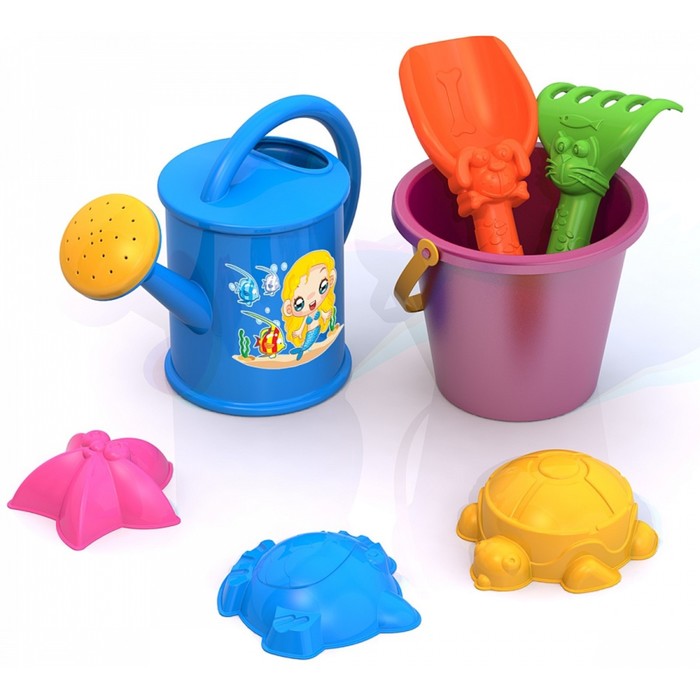 Набор для игры в песке №15: 3 формочки, лейка, ведро, грабли, совок