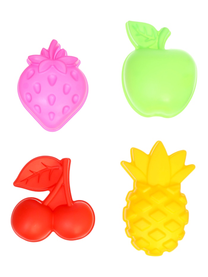 Технические характеристики Набор для игры в песке (Ведро 1л, 4 формочки фрукты-ягоды, грабельки и лопатка)