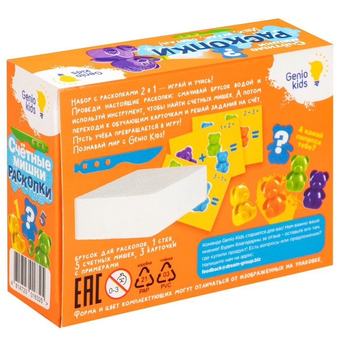 Открой, найди и посчитай — игра начинается с первого движения! Набор для раскопок «Счётные мишки» 2 в 1 — это сочетание игры и обучения, где ребёнок исследует, находит фигурки и сразу применяет их в заданиях. Процесс напоминает маленькое приключение с понятной целью и наглядным результатом.