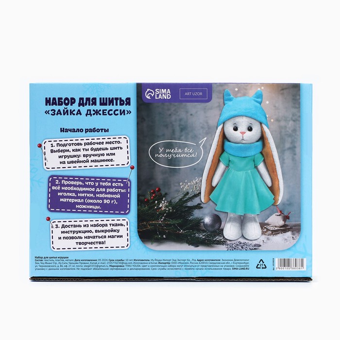 Технические характеристики Набор для шитья. Мягкая игрушка своими руками «Зайка Джесси», 30 см