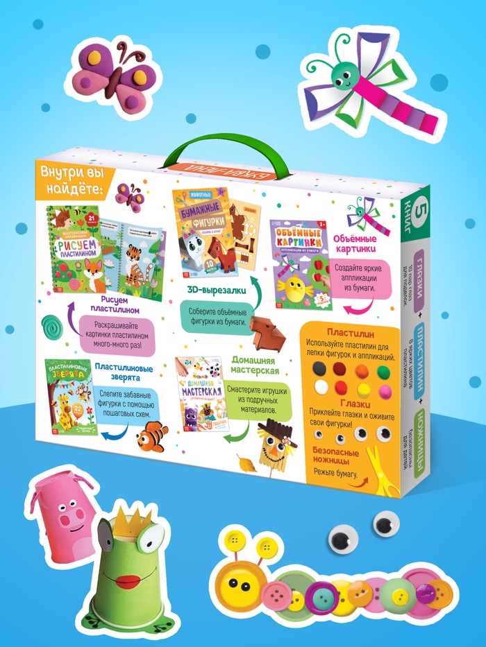 Технические характеристики Набор для творчества, 5 книг, пластилин, ножницы