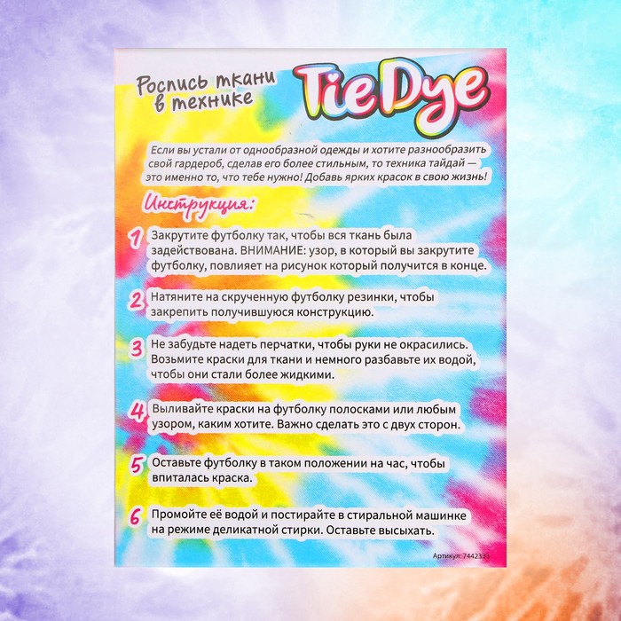 Технические характеристики Набор для творчества «Роспись ткани в технике Тай Дай»