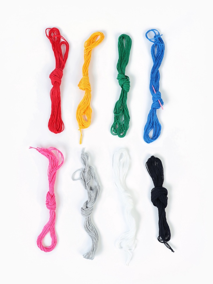 Комплектация | Игла; Нитки; Пяльцы; Ткань; Шпульки |