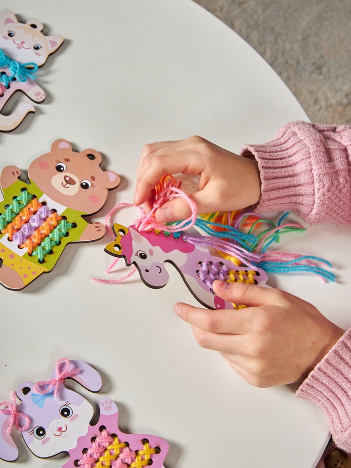 Набор идеально подходит как для начинающих так и для опытных мастеров. Деревянные трафареты с готовыми отверстиями облегчают процесс вышивания, делая его доступным даже для самых маленьких. Яркая и мягкая пряжа приятна на ощупь и легко скользит в руках, а безопасная игла позволяет избежать травм и дискомфорта.