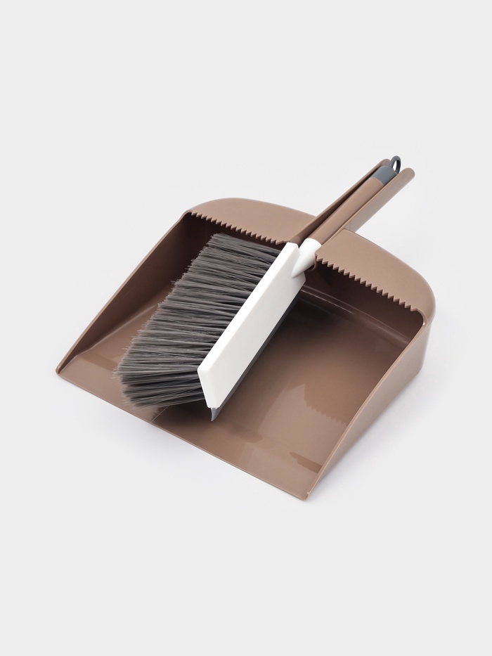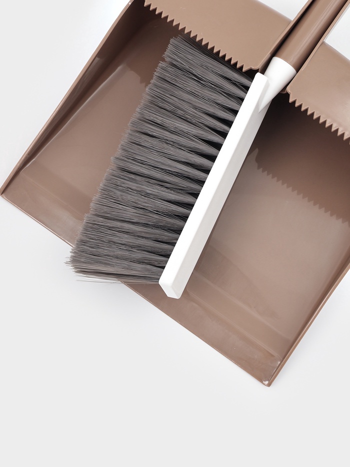 - Щётка крепится прямо к совку — не теряется, всегда под рукой, готова к работе без сборки.