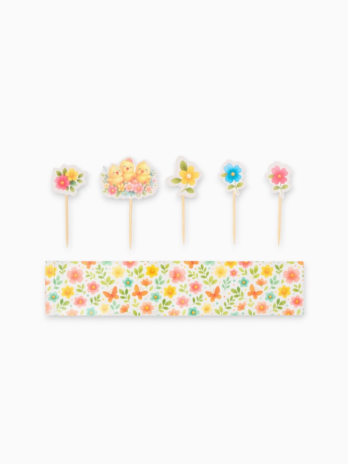 Пасхальный декор для кулича и яиц «Цыплята», краска, фольга, ободок, топперы, перчатки
