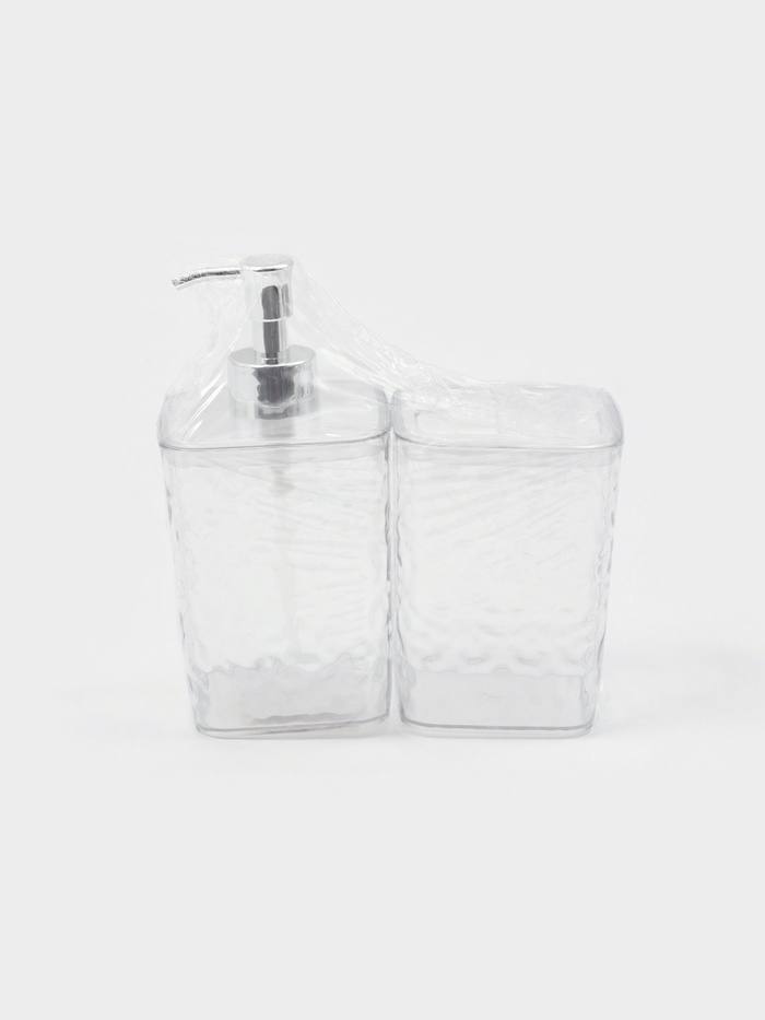 Этот набор — про простоту, которая работает. Дозатор и стакан держат всё необходимое под рукой, но не перегружают пространство. Прозрачный пластик создаёт ощущение «чистоты» и «свежести» — как утренний свет на краю раковины.