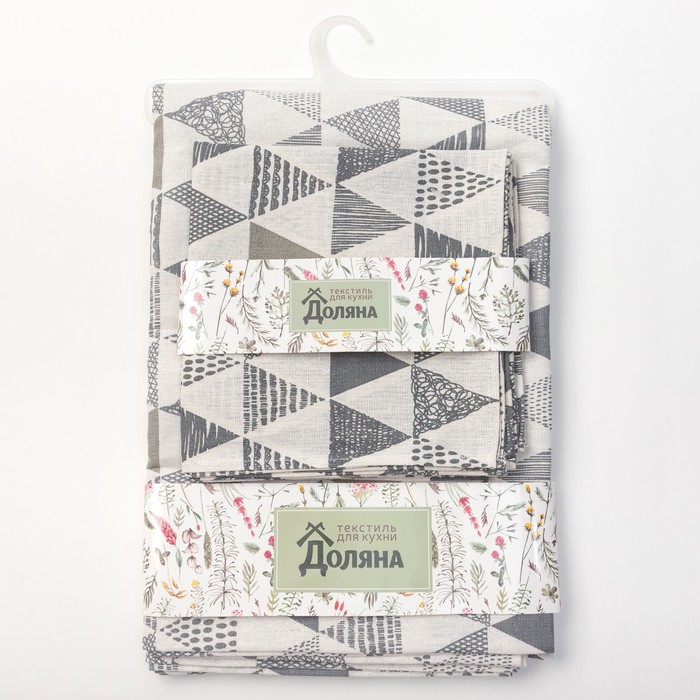 Набор кухонный «Доляна»: скатерть 145×200 см, салфетки 40×40 см, 4 шт., треугольники, 100% п/э, рогожка 200 г/м