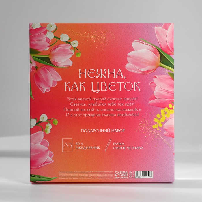 Технические характеристики Набор ежедневник А5, 80 л. и ручка «Тюльпаны 8 марта»