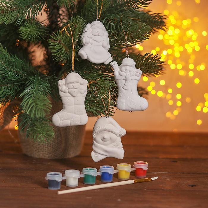 Набор елочных украшений под раскраску 4 шт Сказка с подвесом, краска 6 цв по 2 мл, кисть продажа, цена в Минске