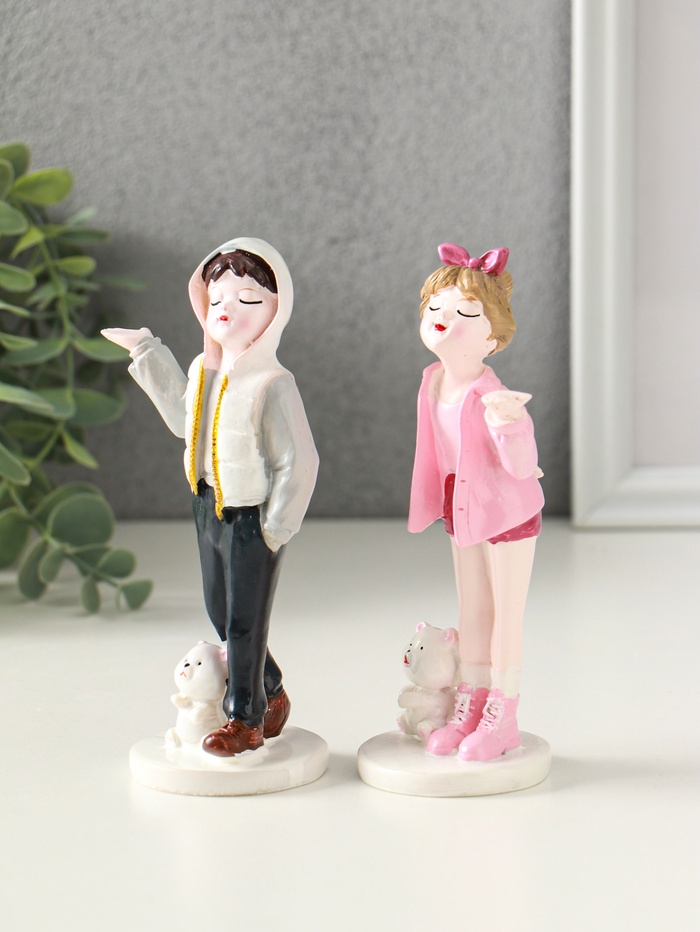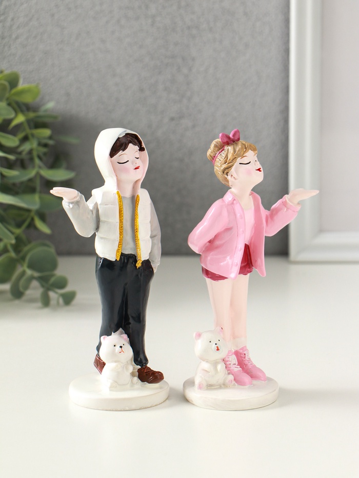 Набор фигурок полистоун «Подростки с мишками», 2 шт., 5.2×6.5×14.5 см