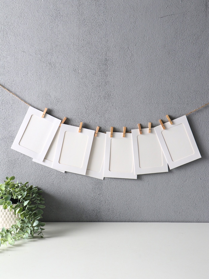 Набор фоторамок 10×15 см с прищепками на веревке «Белая», 10 шт., верёвка 2 м, 22×14×1.5 см