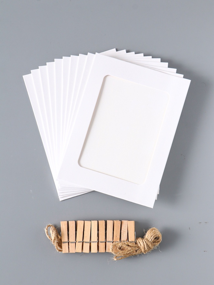 - Комплект из десяти картонных рамок для стандартных фото 10×15 см.