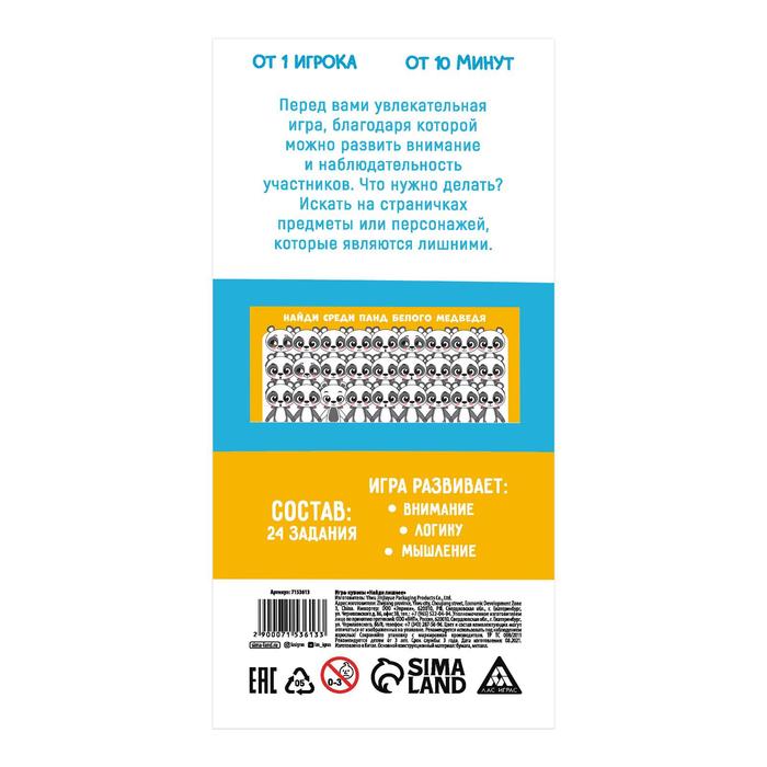 - «Найди лишнее» — в этой игре участникам нужно искать на страничках предметы или персонажей, которые являются лишними.