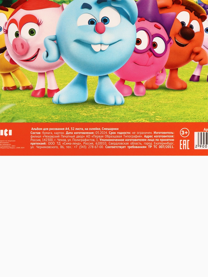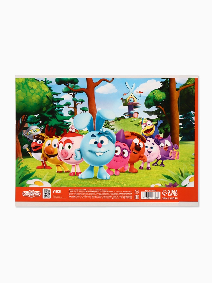 Технические характеристики Альбом для рисования на скрепке, А4, 2 штуки, «Смешарики»