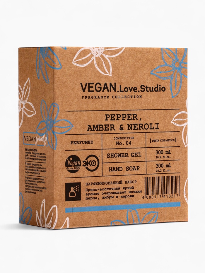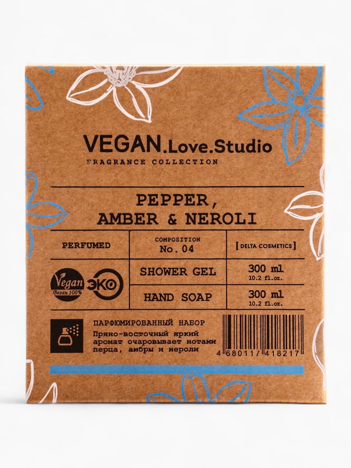 Набор женский VEGAN.Love.Studio "Pepper, Amber, Neroli": гель для душа 300 мл + мыло для рук 300 мл