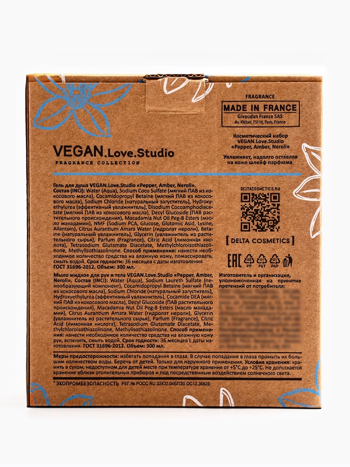 Технические характеристики Набор женский VEGAN.Love.Studio "Pepper, Amber, Neroli": гель для душа 300 мл + мыло для рук 300 мл