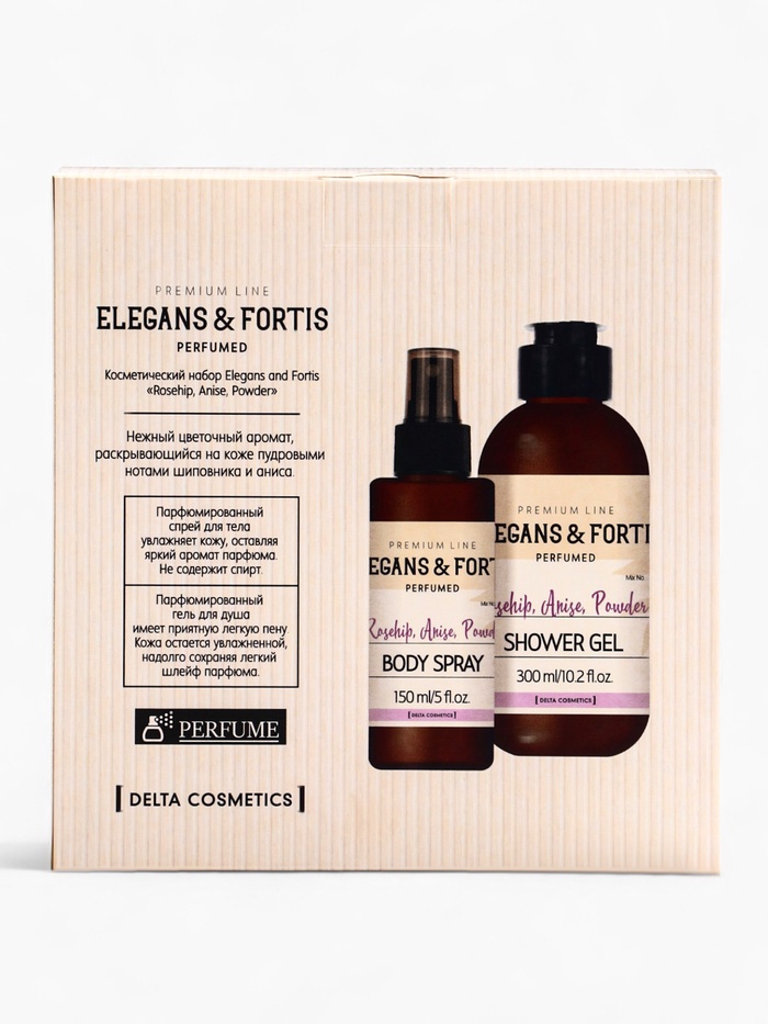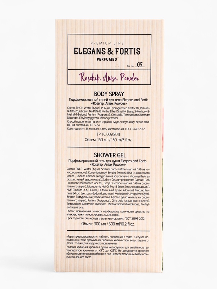 Технические характеристики Набор женский VEGAN.Love.Studio "Rosehip, Anise, Powder": гель для душа 300 мл + спрей для тела 150