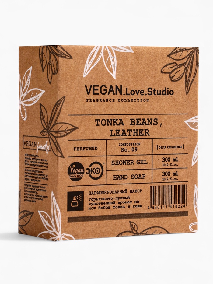 Набор женский VEGAN.Love.Studio "Tonka Beans, Leather": гель для душа 300 мл + мыло для рук 300 мл