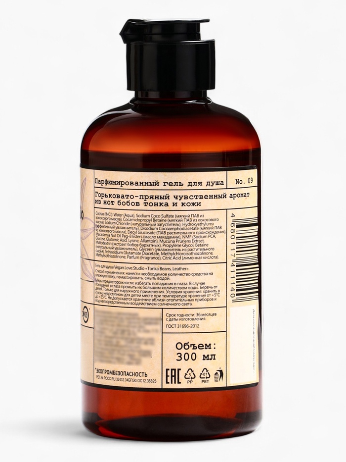 Технические характеристики Набор женский VEGAN.Love.Studio "Tonka Beans, Leather": гель для душа 300 мл + мыло для рук 300 мл
