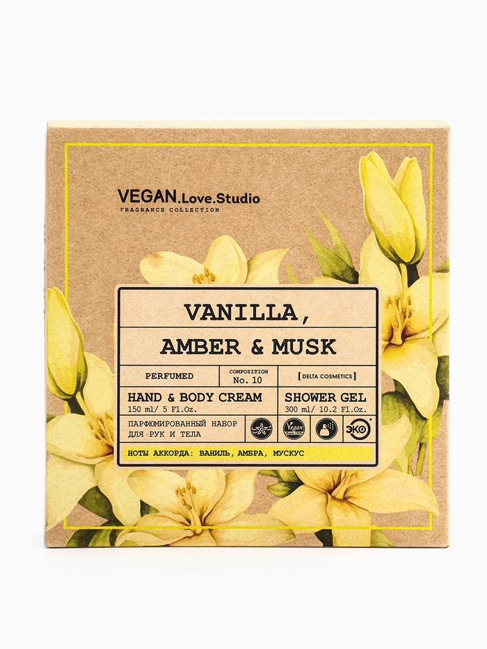 Набор женский VEGAN.Love.Studio "Vanilla, Amber, Musk": гель для душа 300 мл + крем-лосьон 150 мл 10