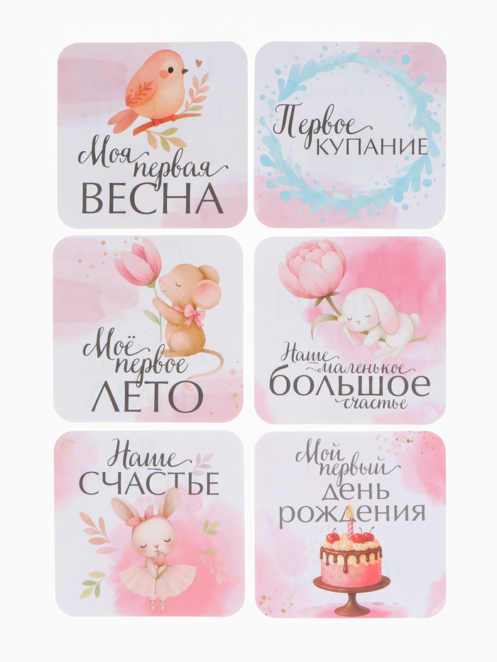Они помогают создать целую историю первого года жизни малыша: отмечать каждый месяц, фиксировать новые достижения и наполнять семейный альбом атмосферой нежности. Карточки легко разместить рядом с ребёнком или использовать как красивый элемент композиции — результат всегда получается выразительным и аккуратным.