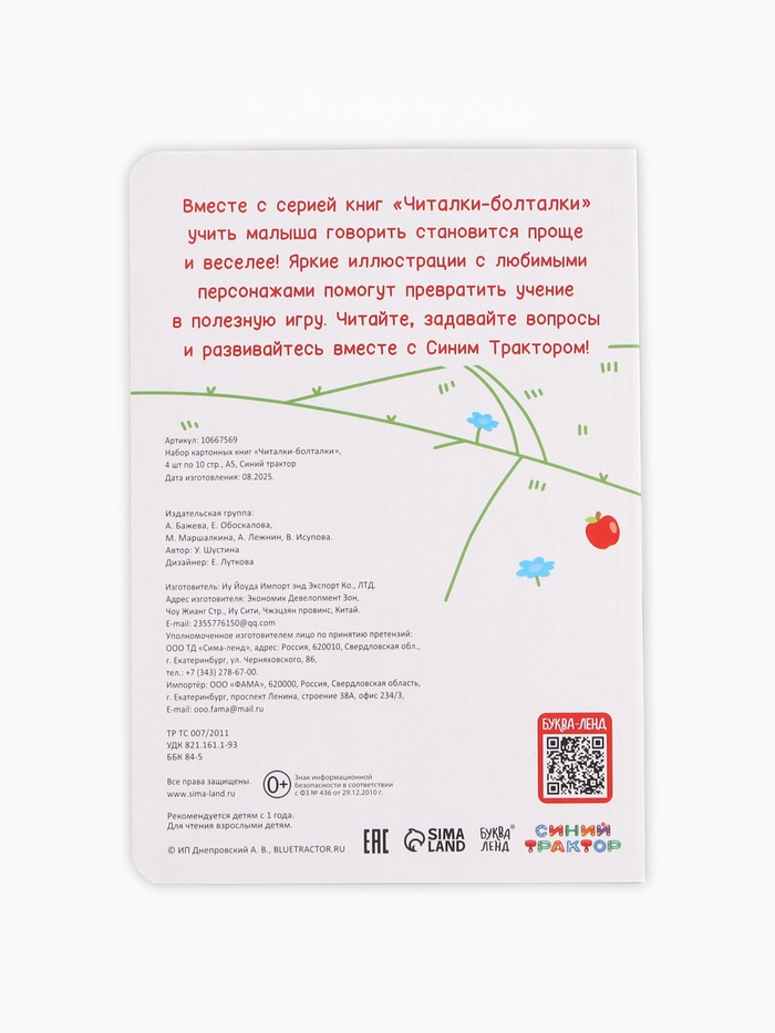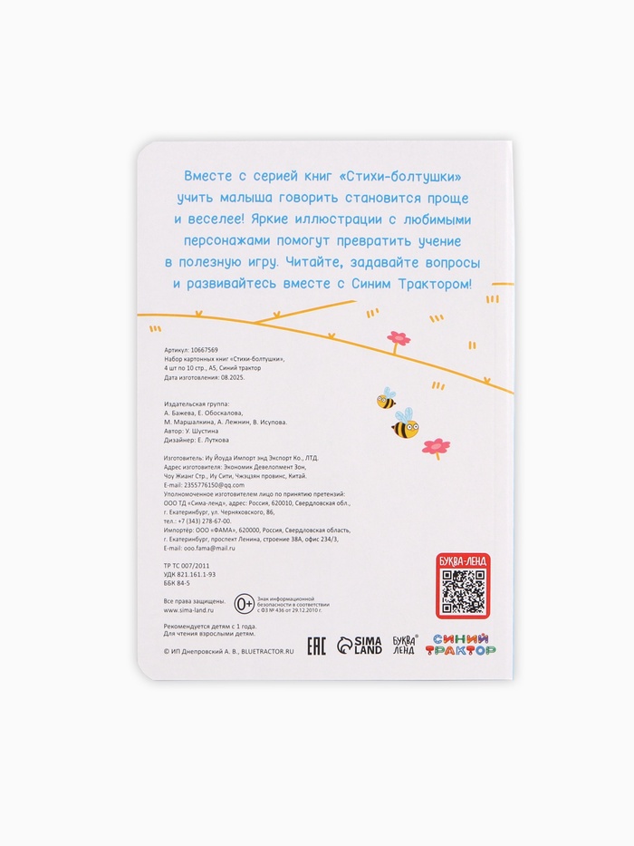 Технические характеристики Набор картонных книг «Стихи-болтушки. Синий трактор», 4 шт. по 10 стр., А5