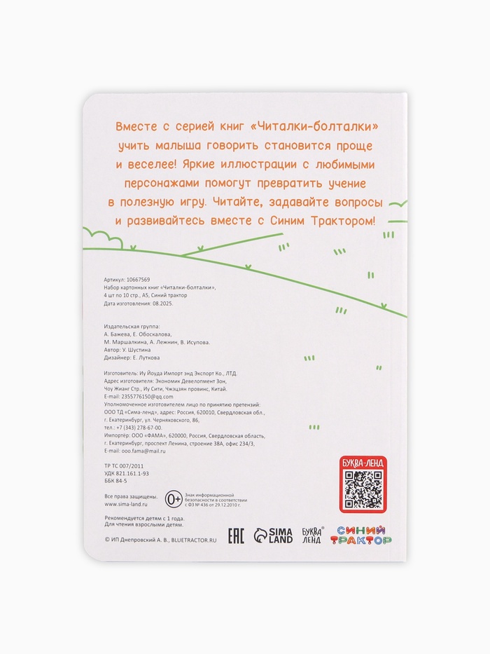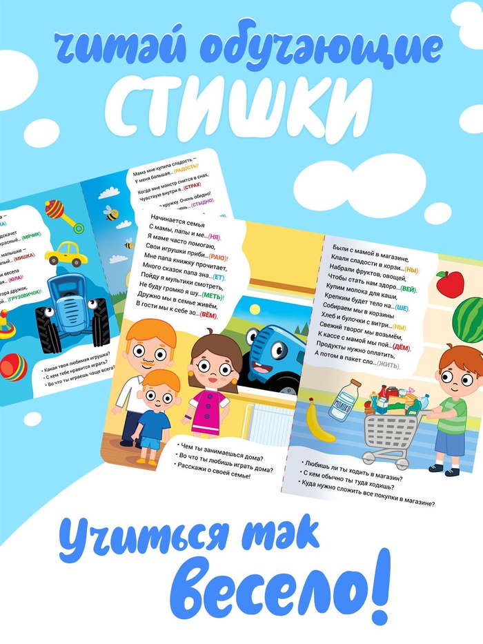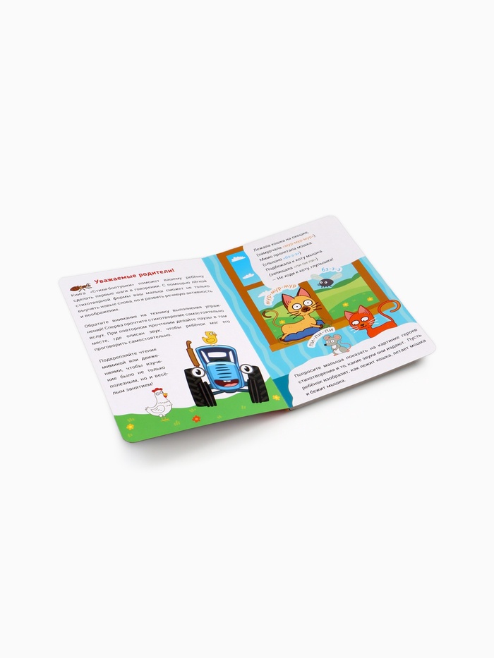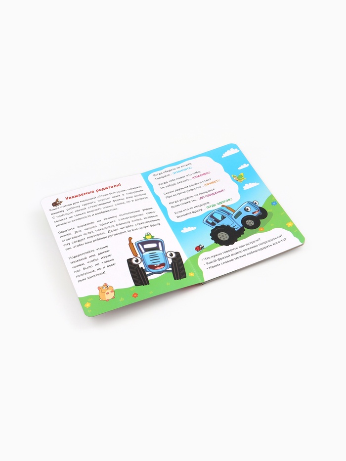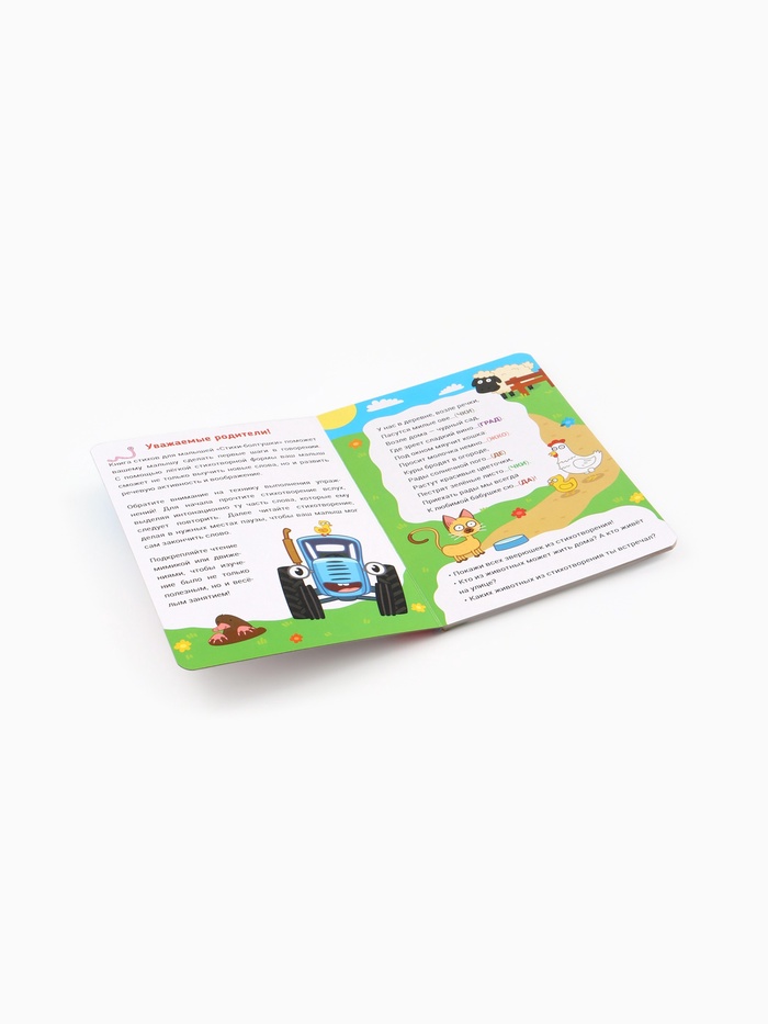 Познакомьте малыша с весёлыми стишками и добрыми героями ! Этот набор создан для того, чтобы читать вслух, смеяться, повторять строчки и вместе мечтать о приключениях синего трактора и его друзей. Картонные страницы выдержат даже самые активные детские ручки — от первых дней знакомства с книгой до уверенного листания «сам».