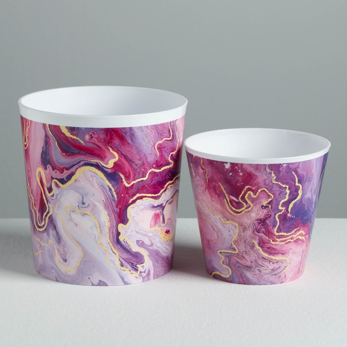 Набор кашпо для цветов 2 в 1 «Мрамор», 0,8 и 1,6 л, 11 х 12 и 14 х 14 см