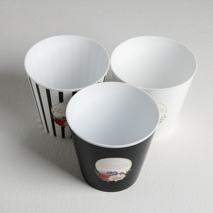 Набор кашпо для цветов 3 в 1 «Beautiful», тиснение, 0.8 л, 11×12 см