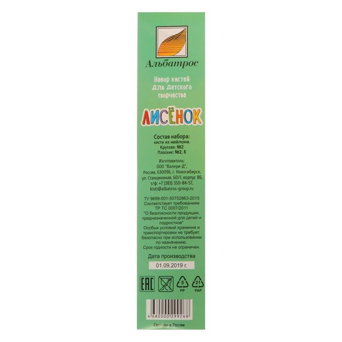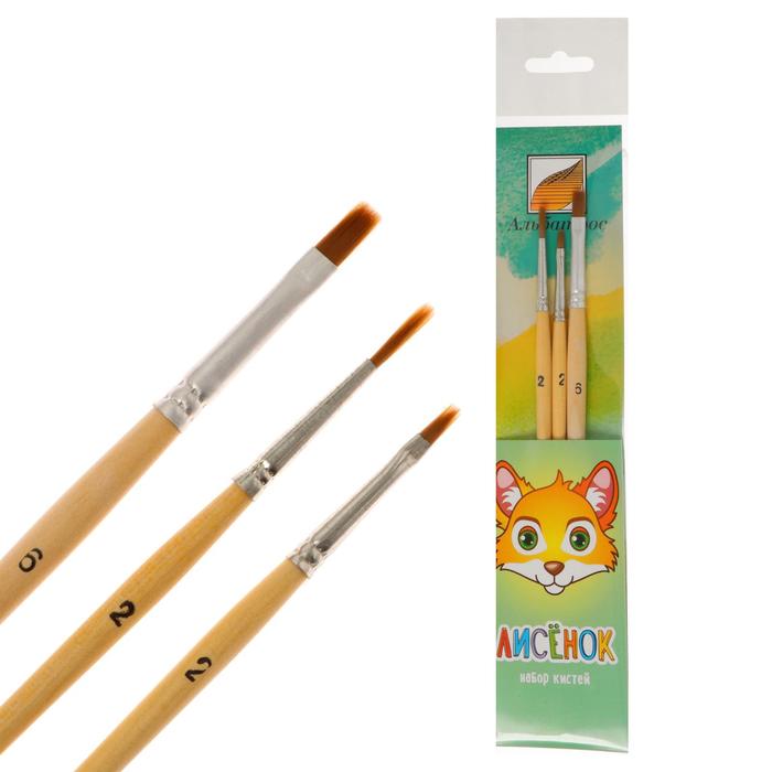 Набор кистей, 3 штуки, «Лисёнок», синтетика, (круглая, № 2; плоская, № 6, 2), «Альбатрос»