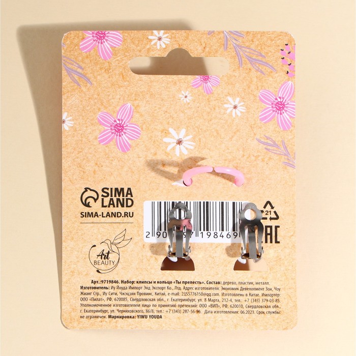 Набор клипсы и кольцо «Ты прелесть» 7 х 9 см