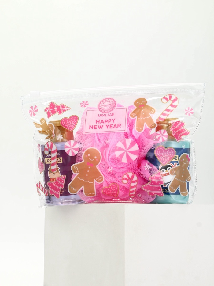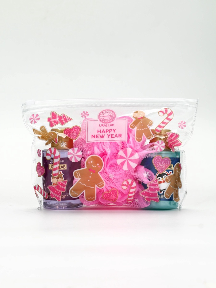 Технические характеристики Набор косметики в косметичке, гели для душа, 2 х 100 мл и мочалка для тела