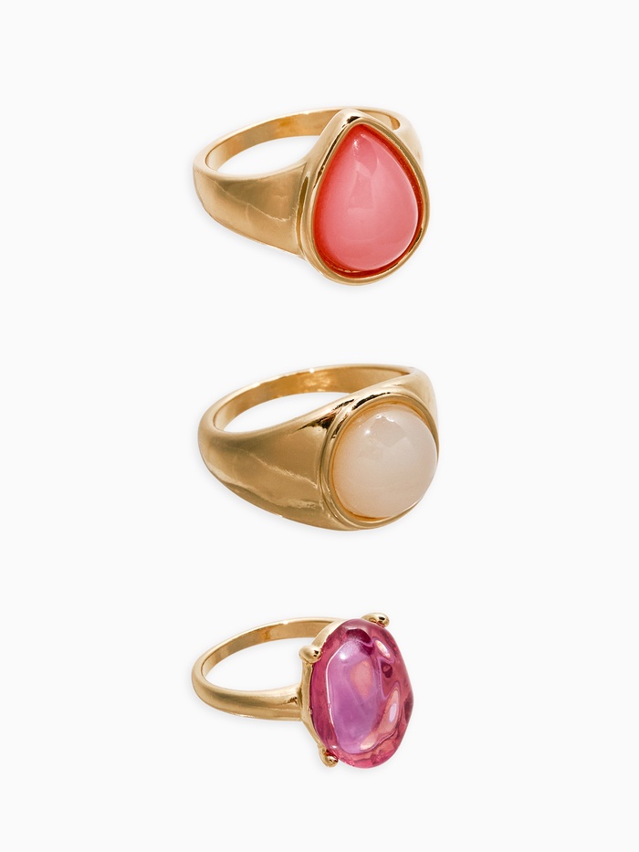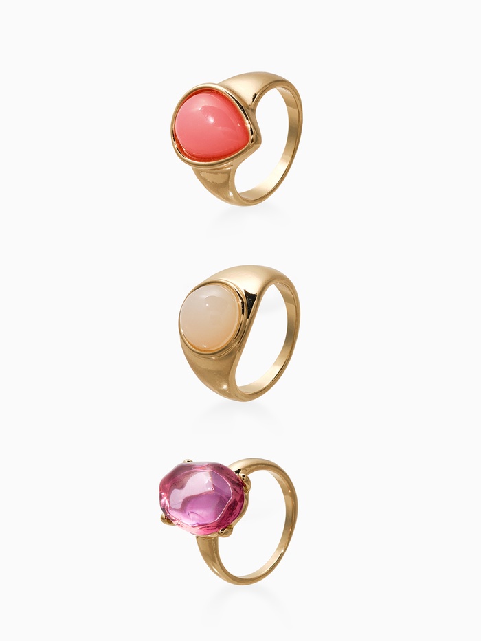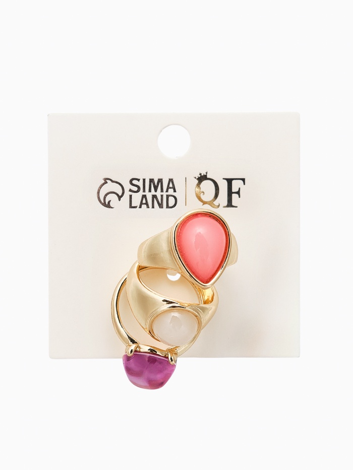 Технические характеристики Набор колец 3 шт "Новый стиль" кабашоны, размер МИКС, цвет розовый в золоте