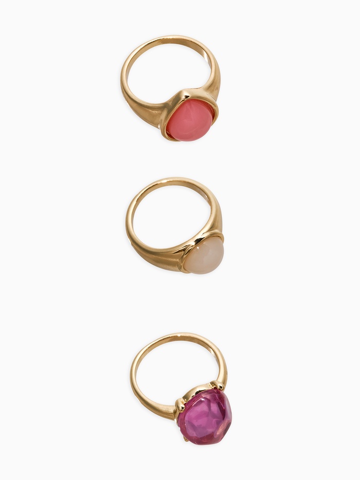 Набор колец 3 шт "Новый стиль" кабашоны, размер МИКС, цвет розовый в золоте