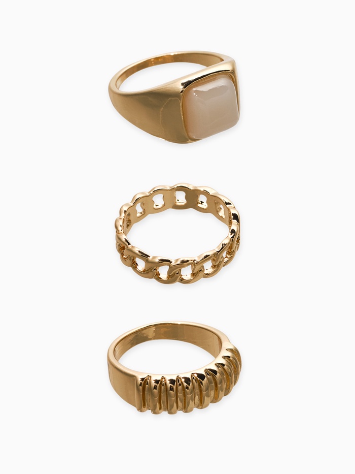 Технические характеристики Набор колец 3 шт "Новый стиль" цепь, размер МИКС, цвет белый в золоте