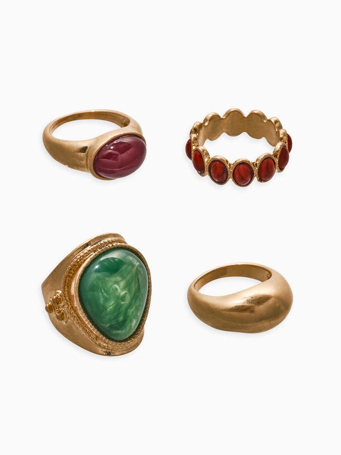 Технические характеристики Набор колец 4 шт "Новый стиль" винтаж, размер МИКС, цвет зелёно-коричневый в золоте