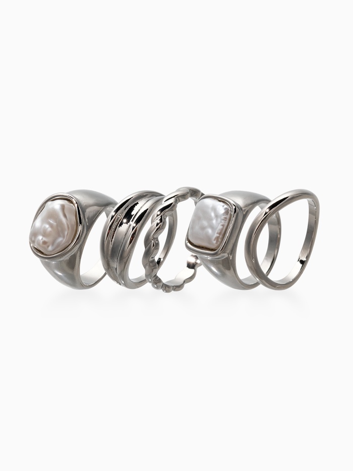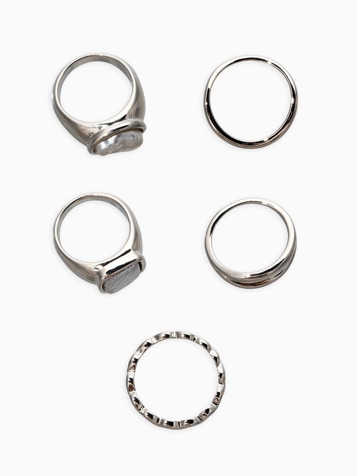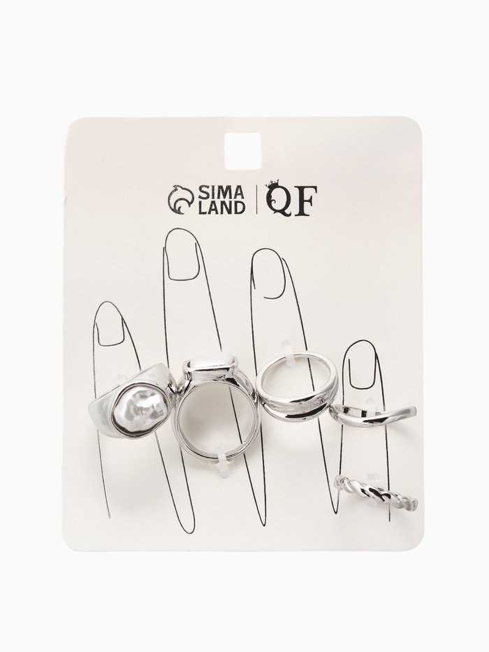 Технические характеристики Набор колец 5 шт "Новый стиль" жемчуг, размер МИКС, цвет белый в серебре