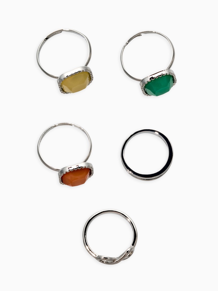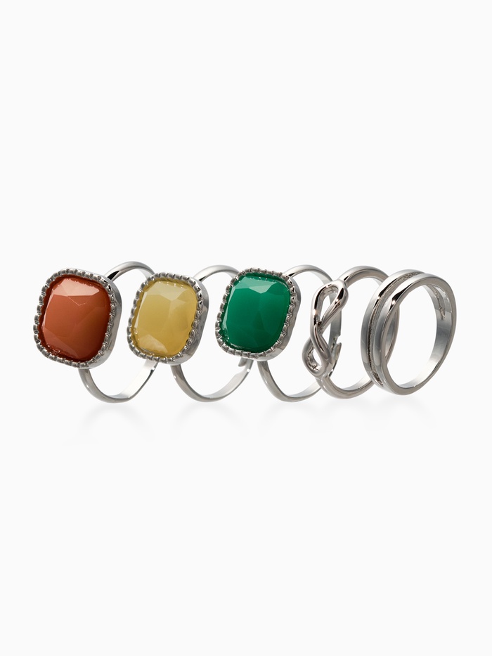 Технические характеристики Набор колец 5 шт "Новый стиль" камни, размер МИКС, цветной в серебре