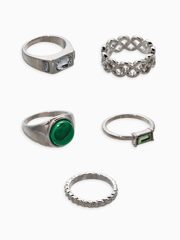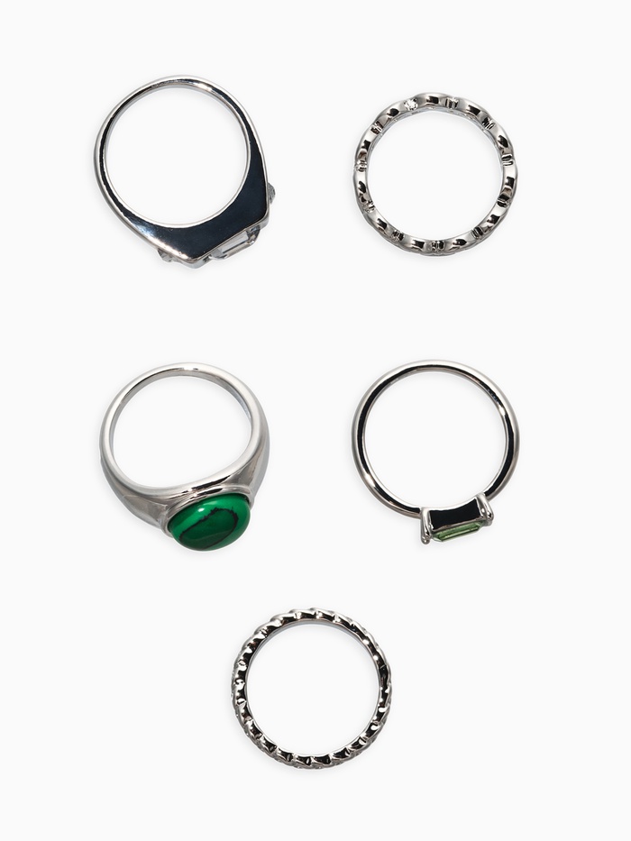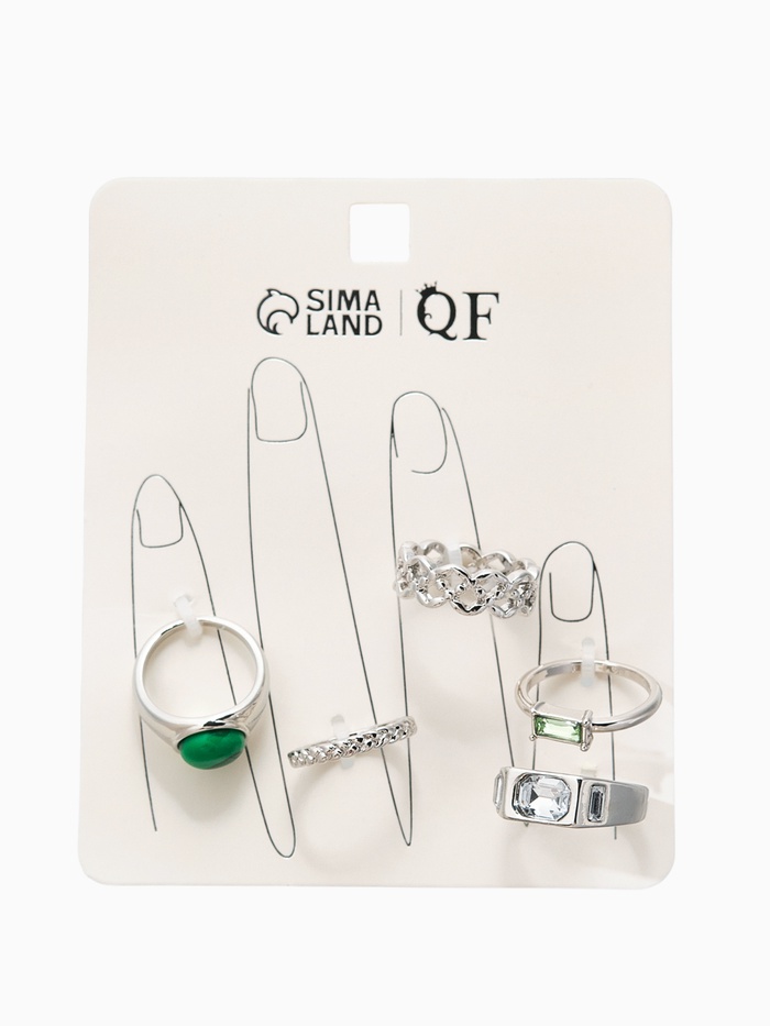 Технические характеристики Набор колец 5 шт "Новый стиль" малахит, размер МИКС, цвет изумрудный в серебре